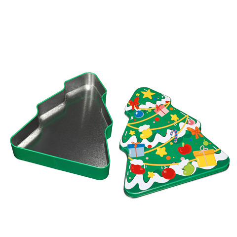 Scatola per Biscotti in Metallo Riciclato Personalizzata a Forma di Albero di Natale con Logo per Confezionamento Alimentare