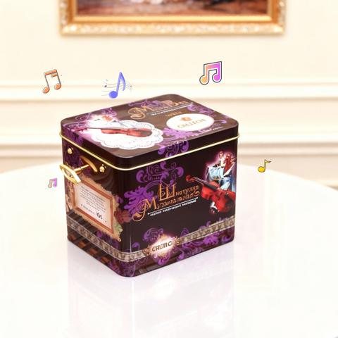 Scatola di Latta Rotonda Musicale per Caramelle e Cioccolatini, Regalo Decorativo Ecologico Riciclabile con Design Musicale